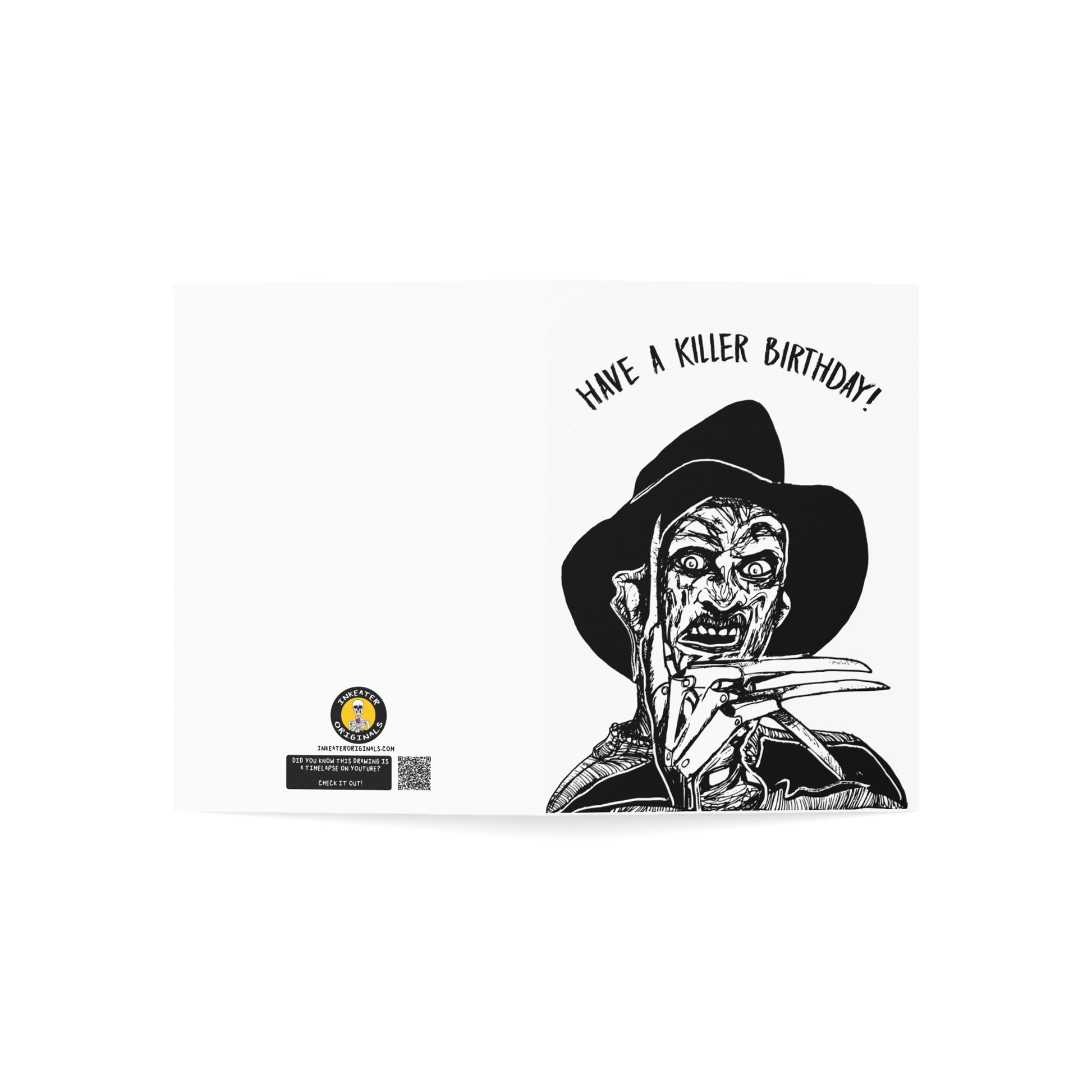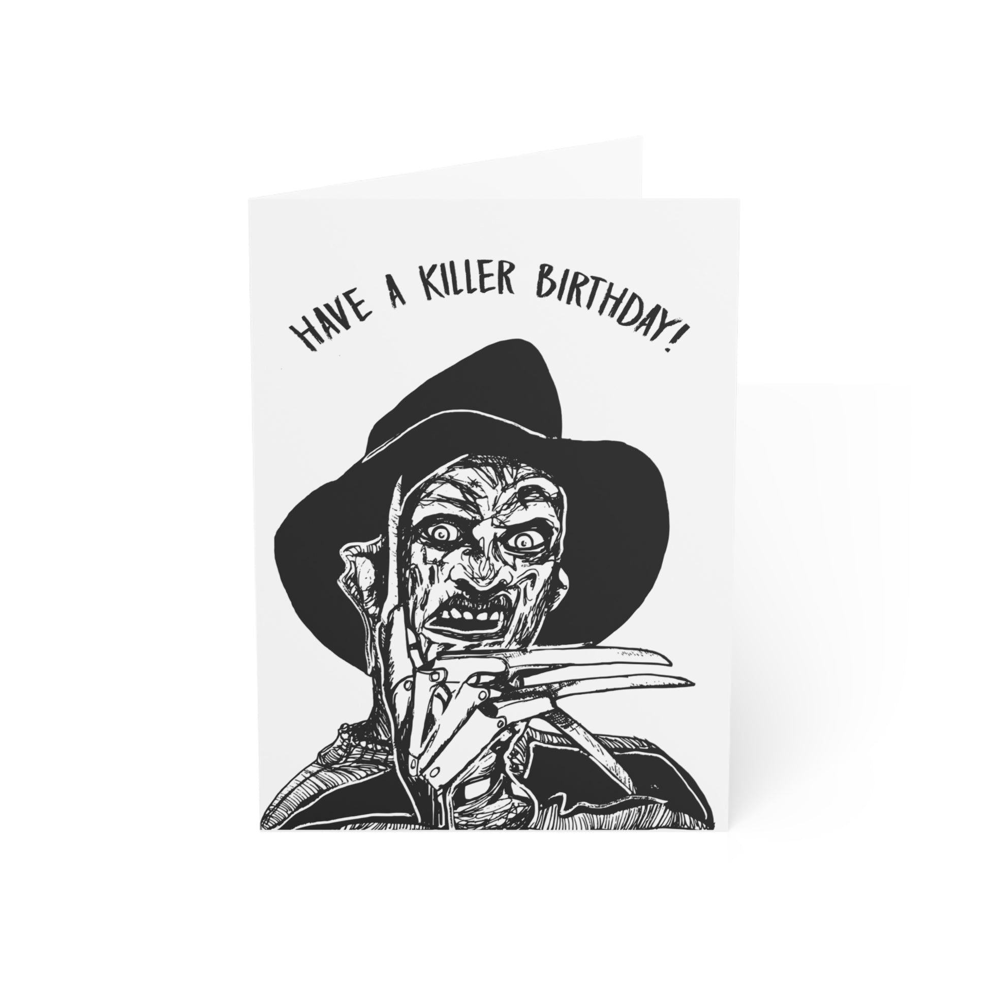 This product is perfect for those seeking a funny and offbeat birthday gift to surprise their odd and quirky friends, family members, and more. Whether it's a horror movie-themed birthday party or a celebration for someone who appreciates the creepy and unconventional, this card is an ideal choice. Use it as a standalone gift or accompany it with other presents to make a lasting impression. Send it by mail or deliver it in person to create an unforgettable birthday experience. All cards come with envelopes.