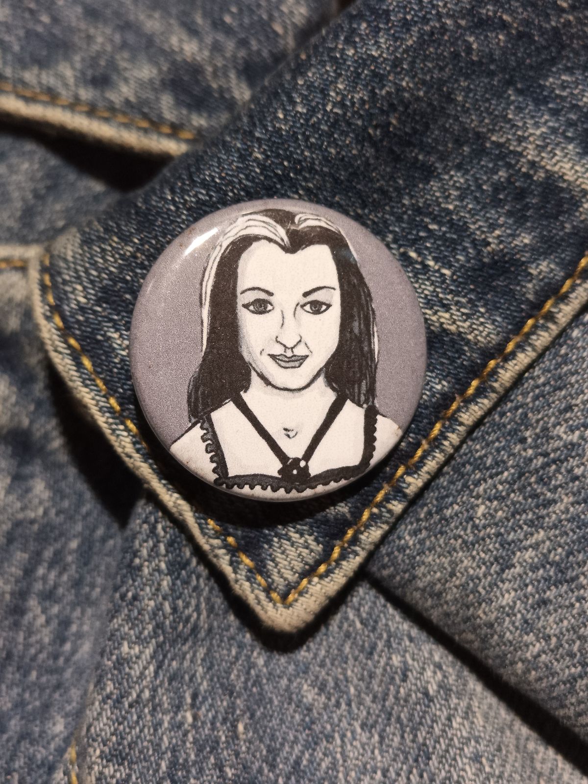 Printed on a laser printer with care and spooky love, this button is an ideal collectible for horror fans and pinback button collectors alike. Add it to your jacket, bag, or display collection to celebrate one of horror’s most iconic ladies.