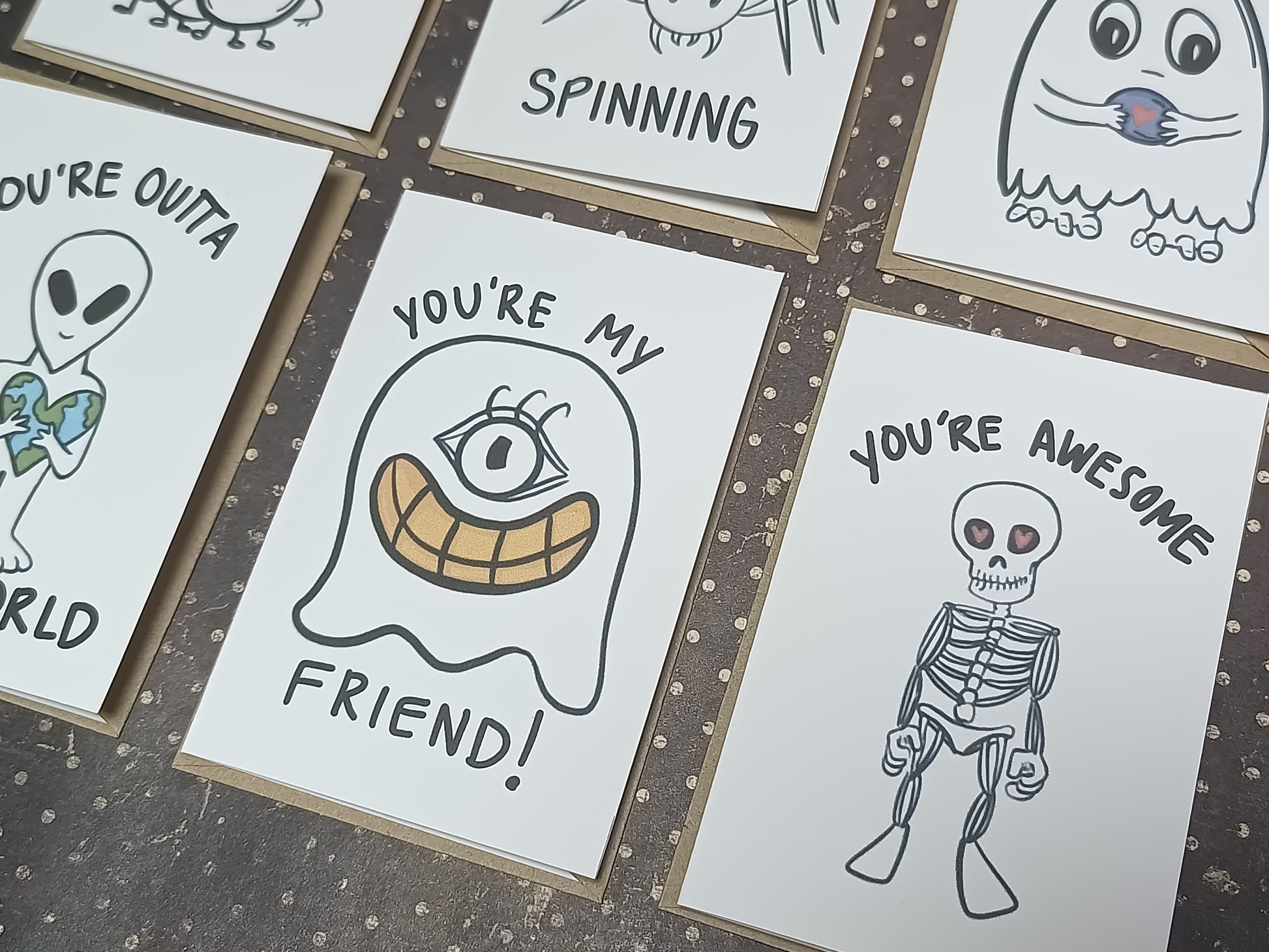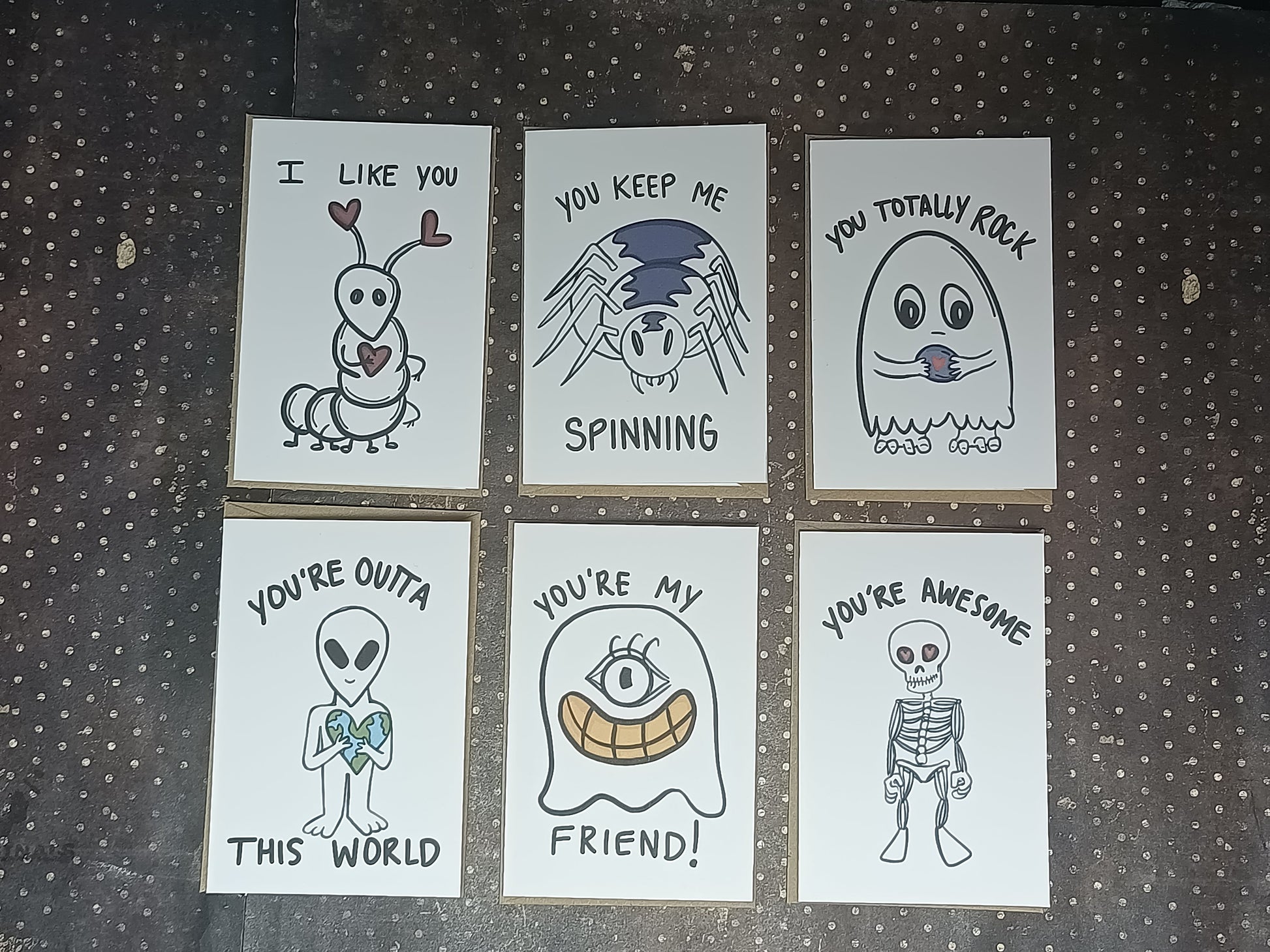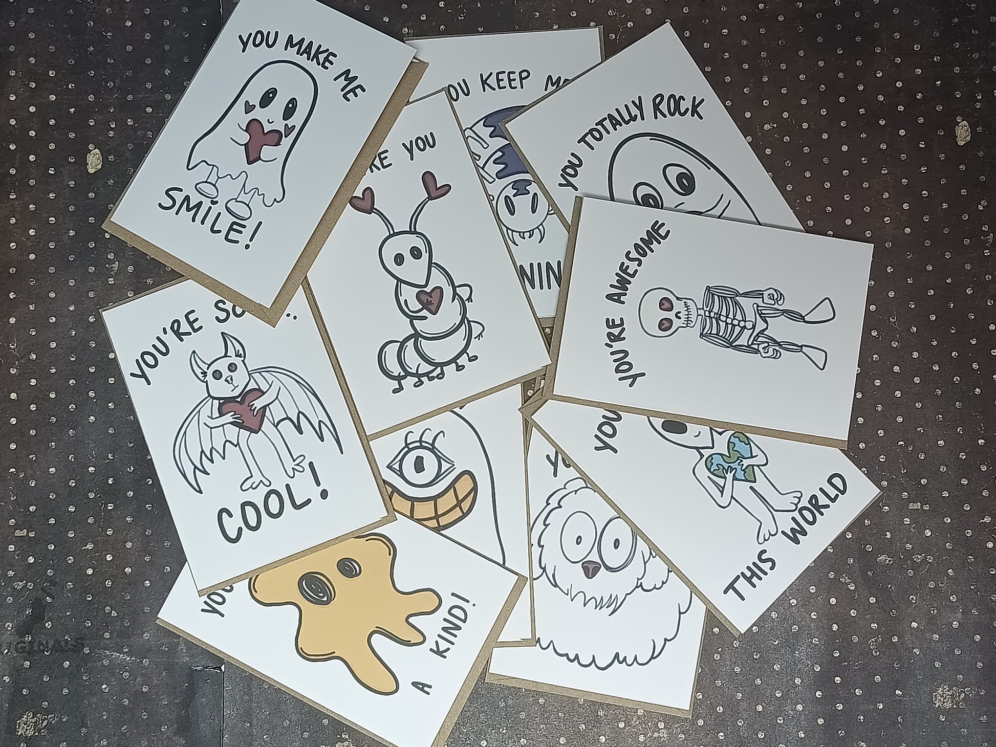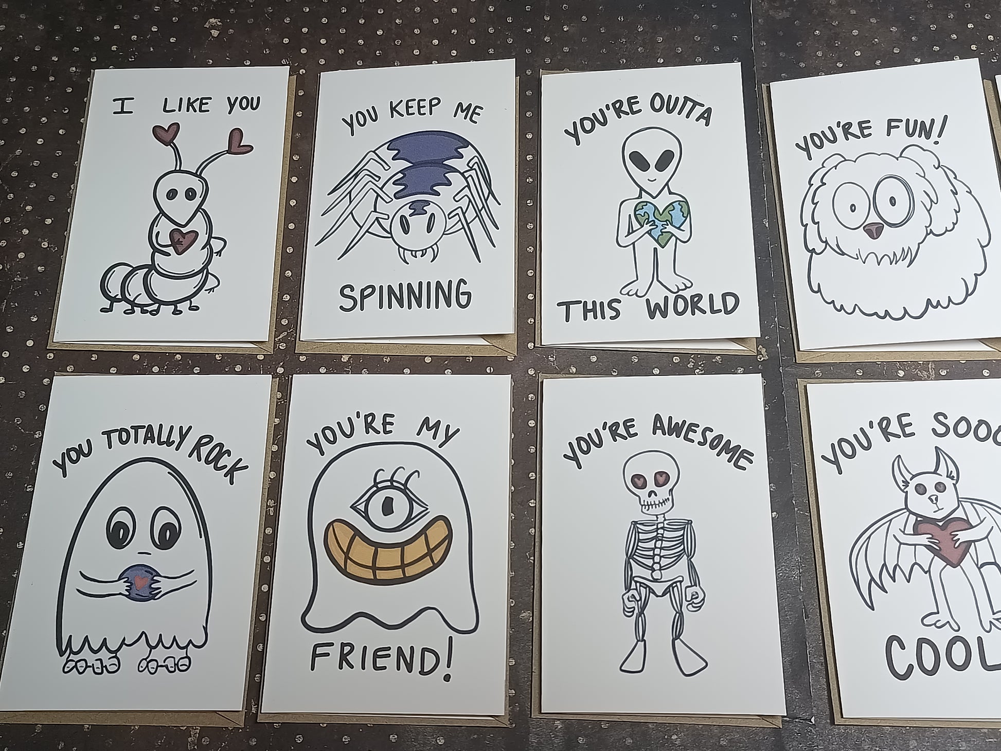 This Sweetly Strange Mini Valentine Card Set features 10 original designs by Inkeater Originals, filled with friendly monsters, playful characters, and simple messages that are easy for young readers to enjoy.