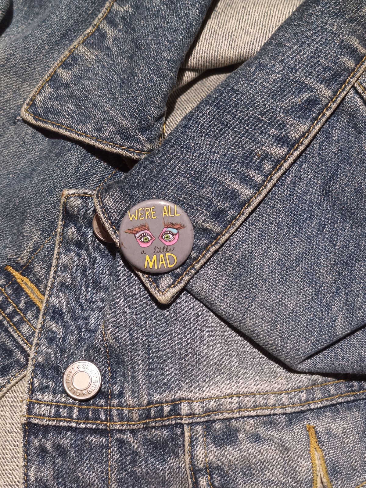 👉 Grab your “We’re All Mad” pin today and wear the weird proudly!