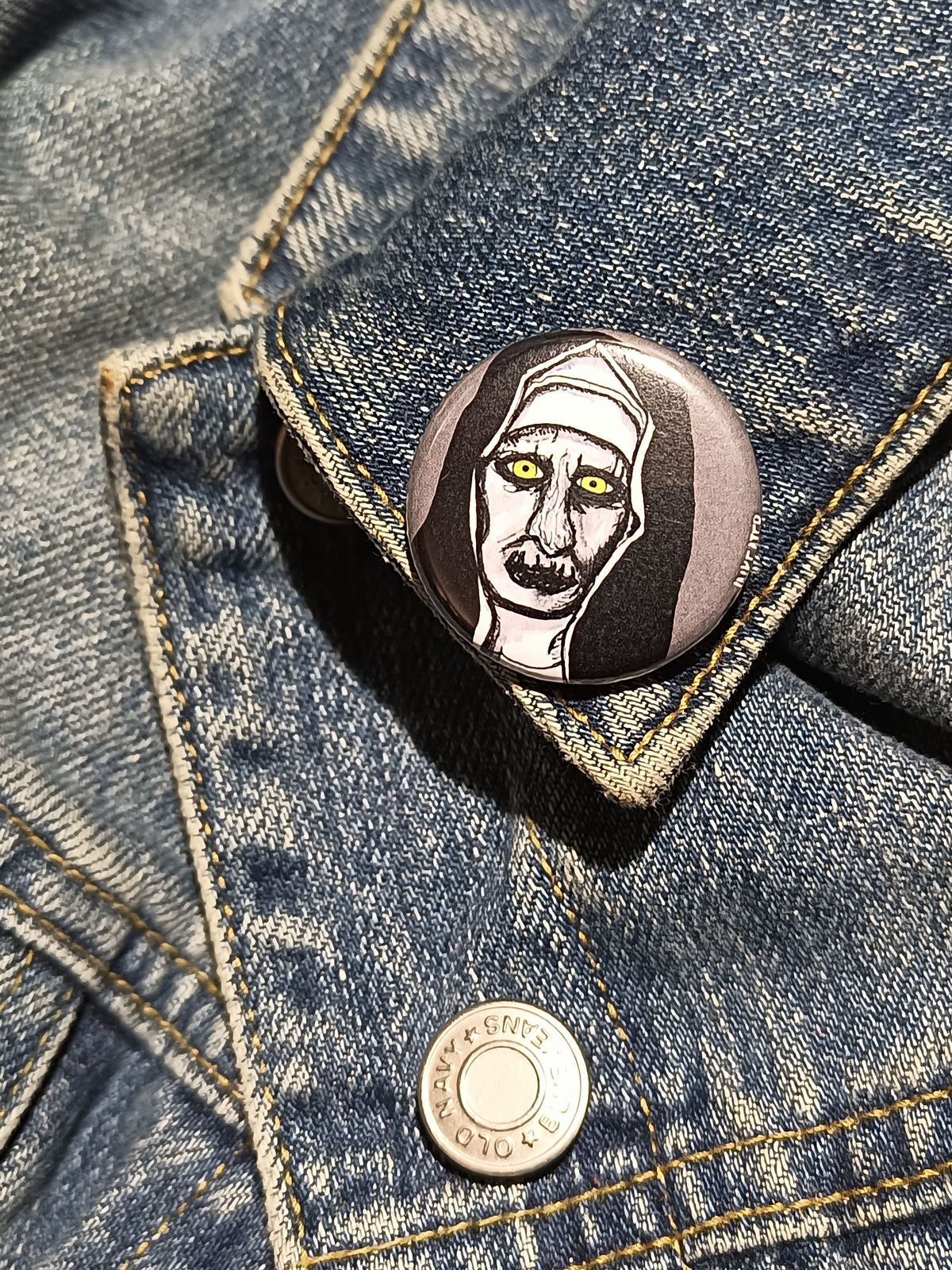 The Nun Button | Conjuring Horror Pin for Scary Movie Fans