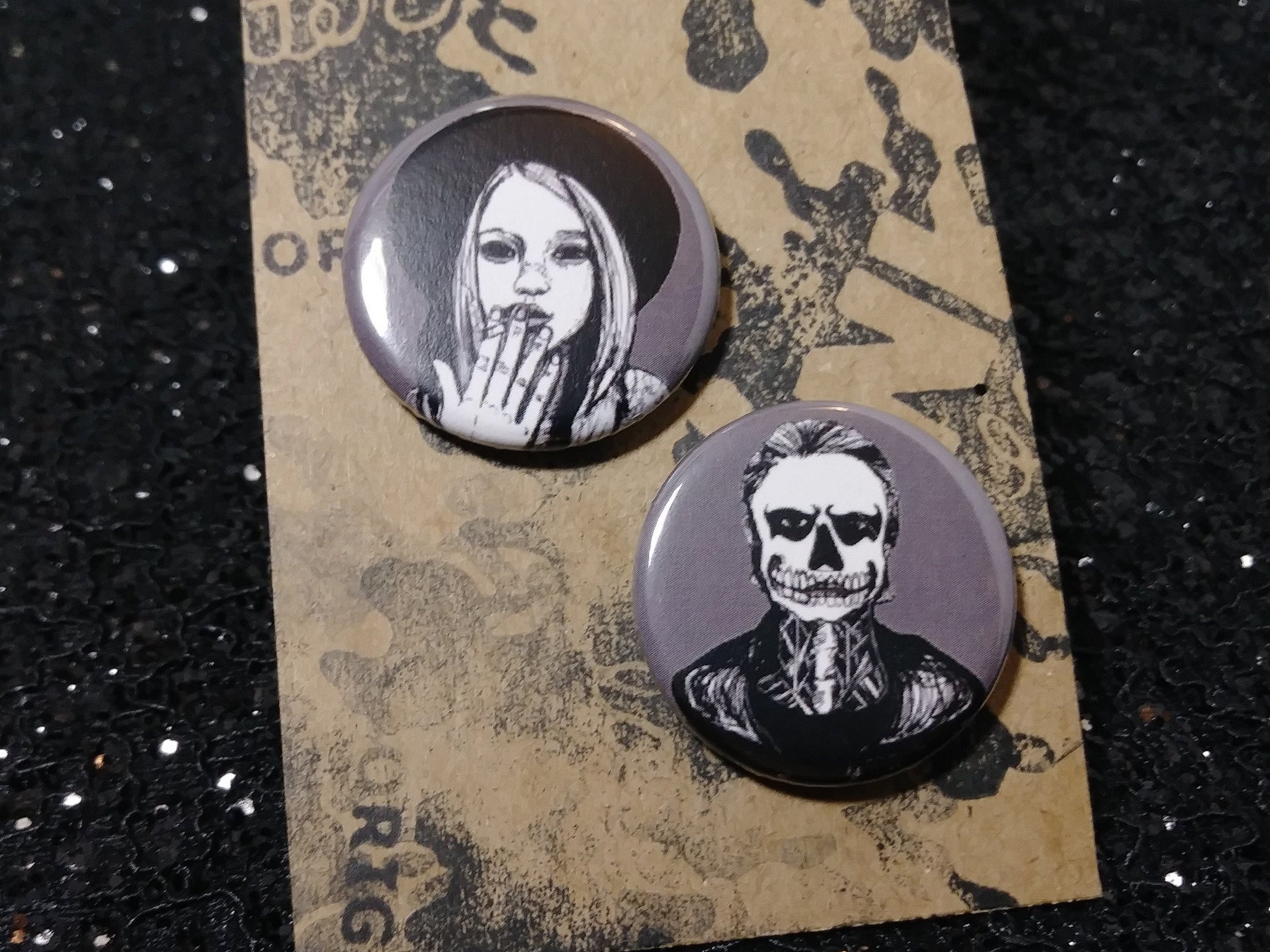 Embrace the dark romance with Violet and Tate Couples Pinback Buttons. Inspired by Evan Peters and Taissa Farmiga in American Horror Story.