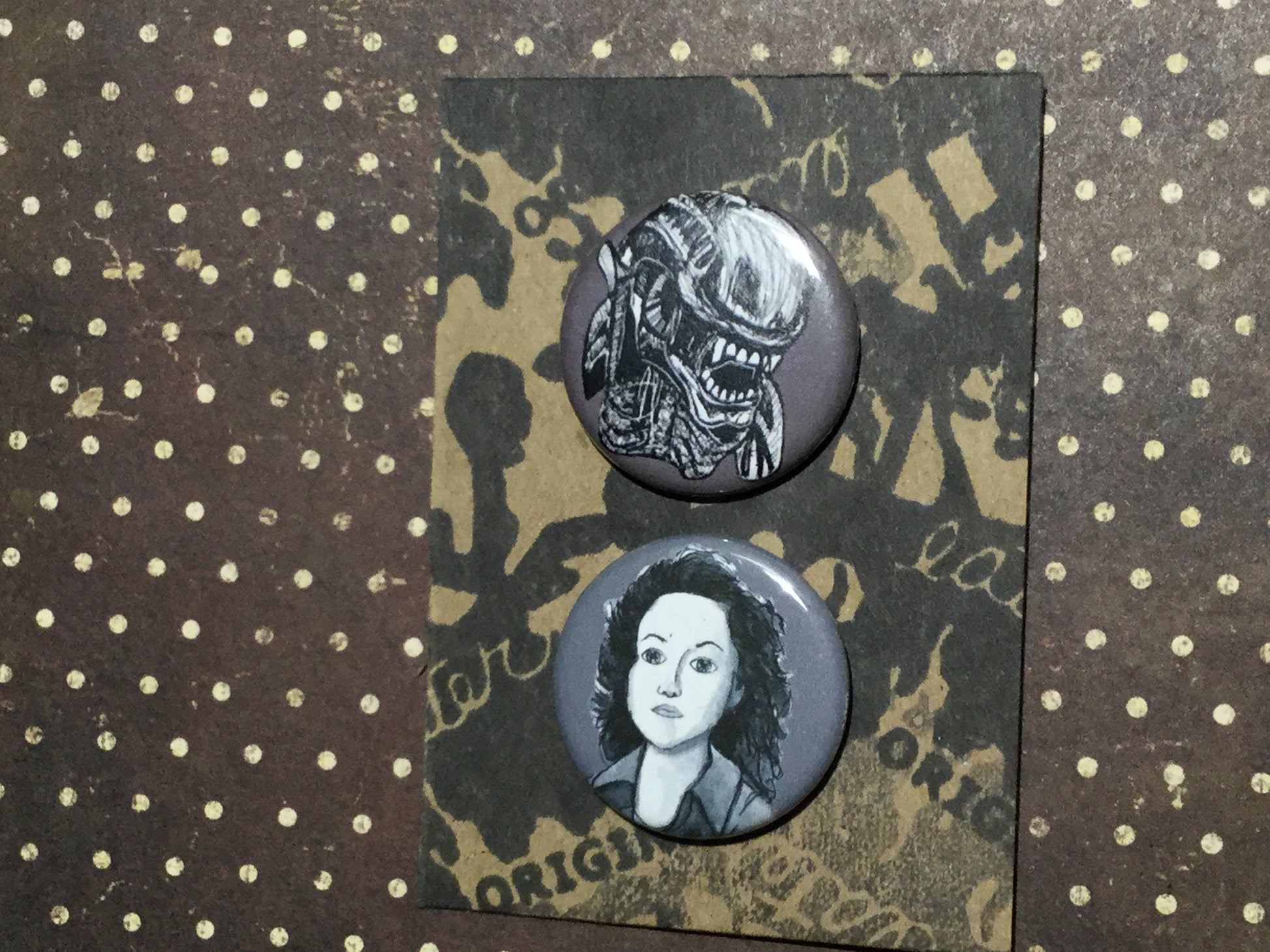 Xenomorph Ellen Ripley Couple Pinback Button Set - Horror Movie Pins for Alien Fans!